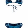 Elastic laminated mirror effect fabric with intense ocean shades. The print inspired by the deep blue caresses the silhouettes, likewise the waves of the sea, for a true mermaid effect! An exclusive bikini with an extraordinary shine, certainly ideal for your holidays as a true goddess of the sea. Entirely hand made in Italy.- Anna sliding triangle with removable cups, lacing with knot at the neck or on the back.
