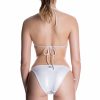 A minimal total white iridescent illusion bikini that shines of its’ own ligh. A real and own object of desire.