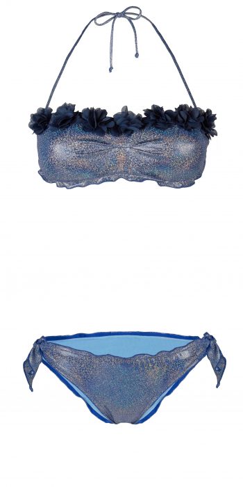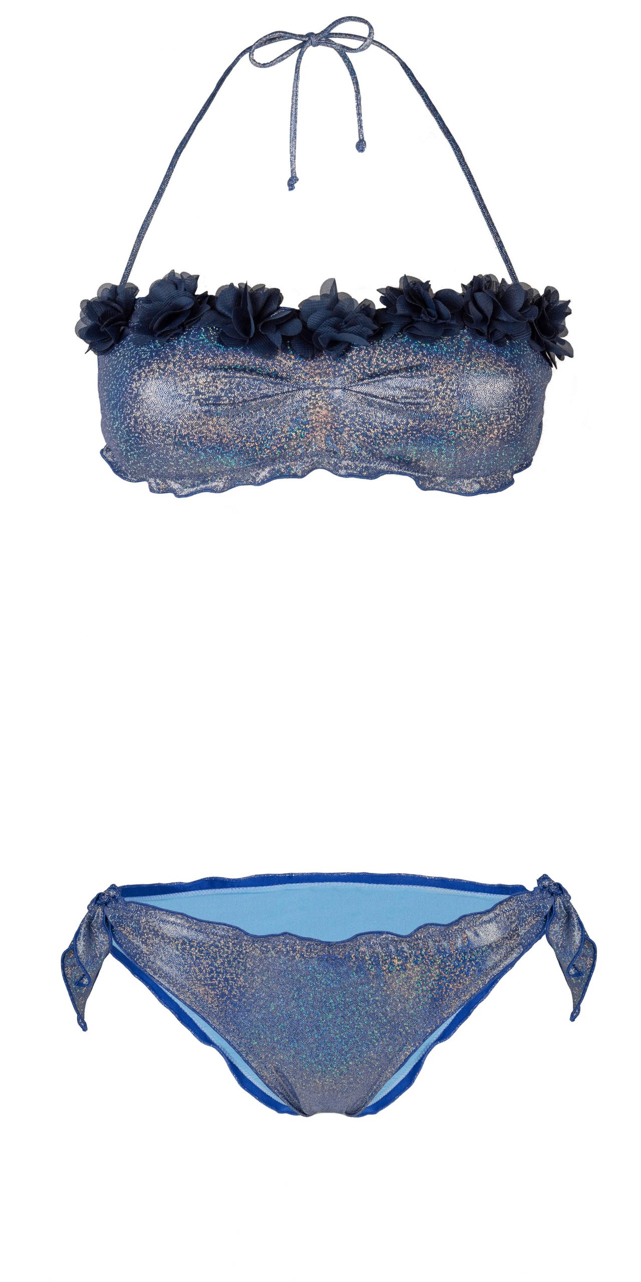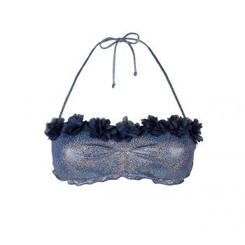 - Betty Flower heart rouches band, side sticks for better support, removable cups and removable laces. Hand embroidered with blue tulle flower petals.