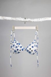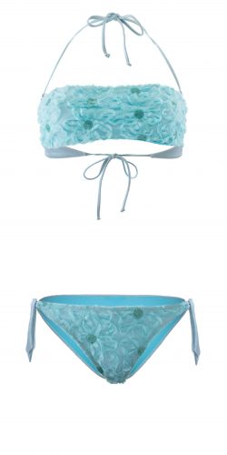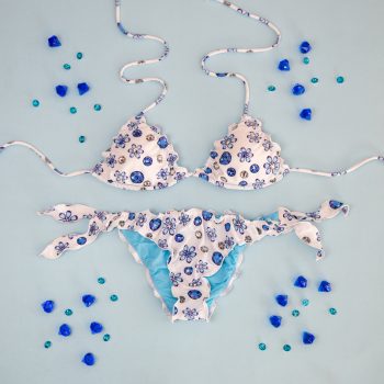 Il bikini Diamante comprende il triangolo rouches Letizia, dotato di lacci scorrevoli e un’imbottitura push up estraibile per un sostegno personalizzabile.