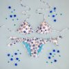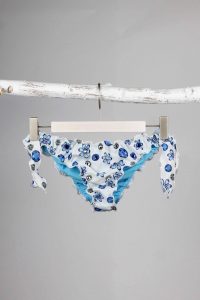 L’accoppiata perfetta per il triangolo Letizia è lo slip rouches Fanny. Questo slip presenta lacci regolabili da annodare sui fianchi, consentendoti di regolare la vestibilità in base alle tue preferenze. Come il triangolo, anche lo slip è decorato a mano con strass bicolore: una nota di eleganza e raffinatezza al tuo outfit non solo da spiaggia.